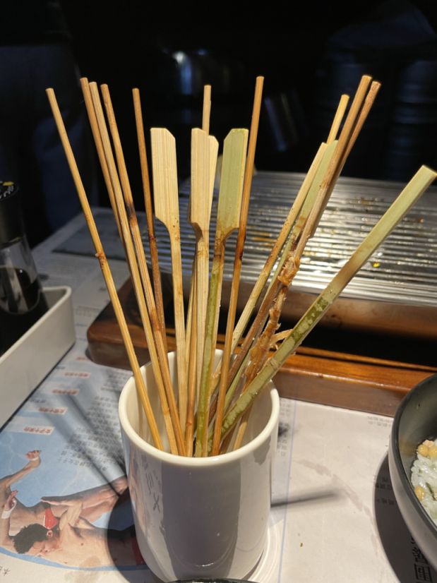 More skewers wiht pork belly, chichen heart, chicken thighs, lamb skewers, and chicken skin (very crispy and delicious).