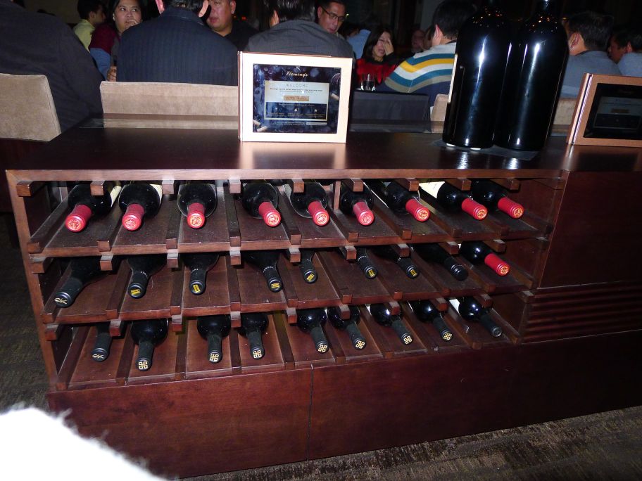 Close to our table they have a wooden table to store a bunch of wine bottles.