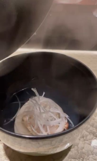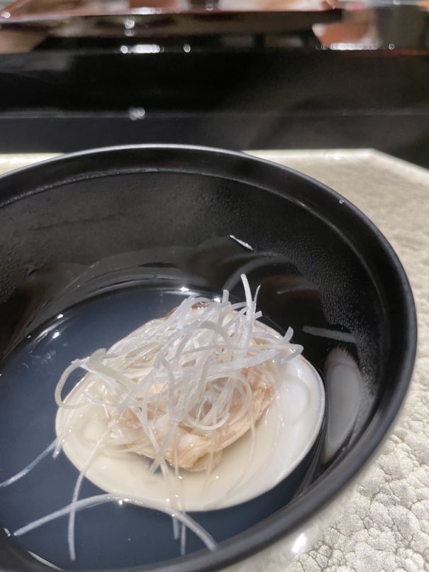 The second course is steamed clamed served in a soup bowl and as you opened the lid fragrant vapor just emanated from the bowl.