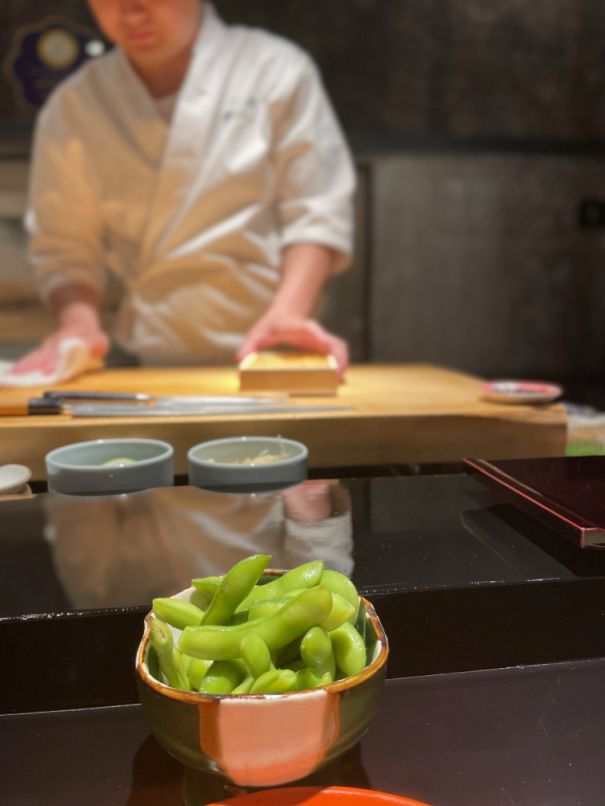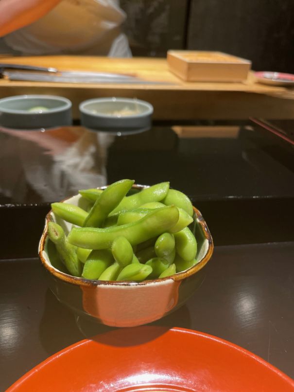 Then we get a bowl of edname for a quick snack while the chef are preparing our next course.