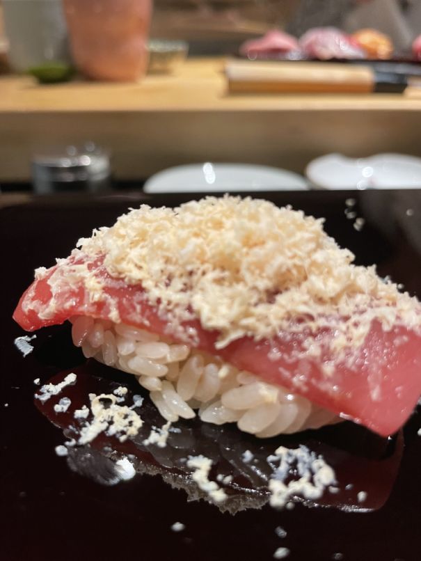The chef actually shaved a good amount of Foie gras on top of the tuna negiri. This is so good!