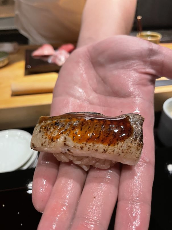 Then he brushed the top of the eel with what looks like to be teriyaki sauce.