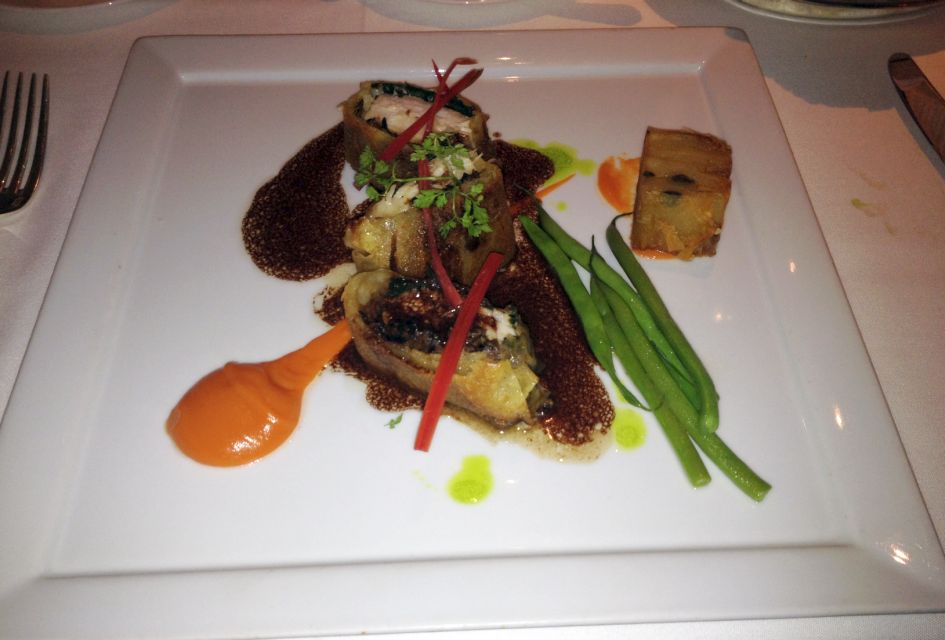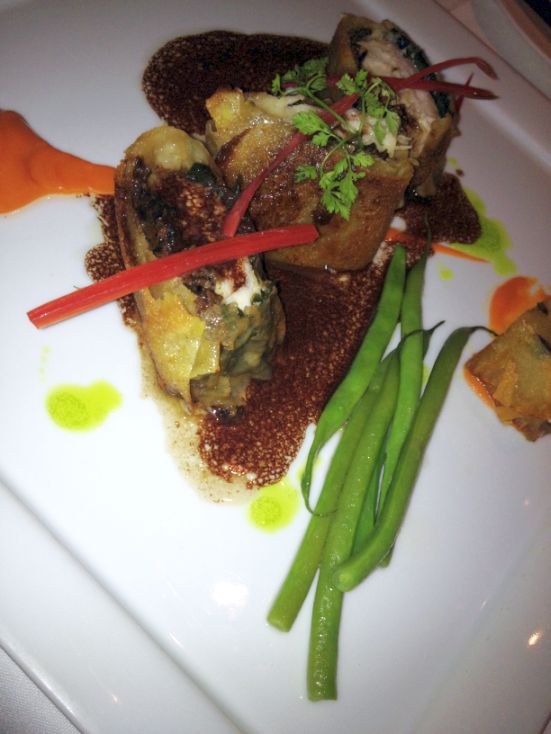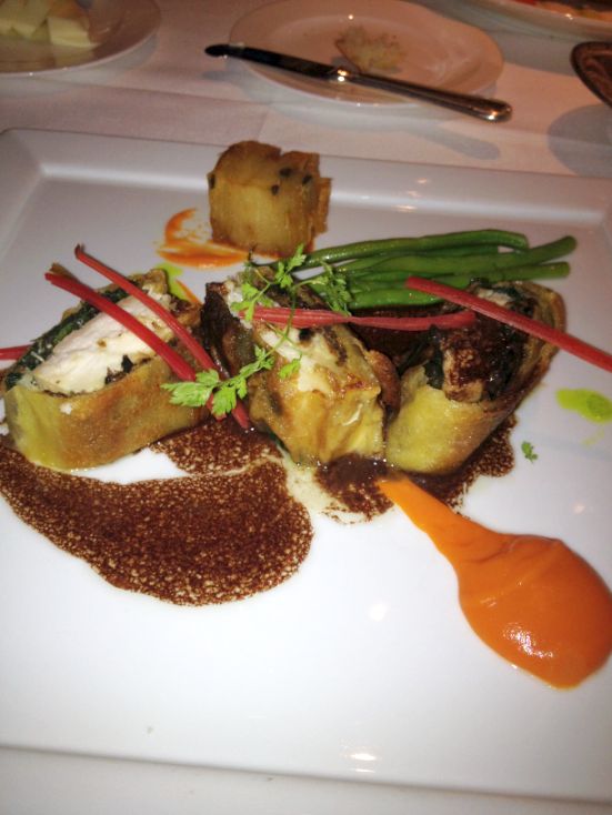 Our waiter was explaining that the chef wrap the Sturgeon in Swiss chard leaf, added a layer of chopped chanterelle mushrooms, wrapped the whole thing in brick leaf and it is roasted in the oven.