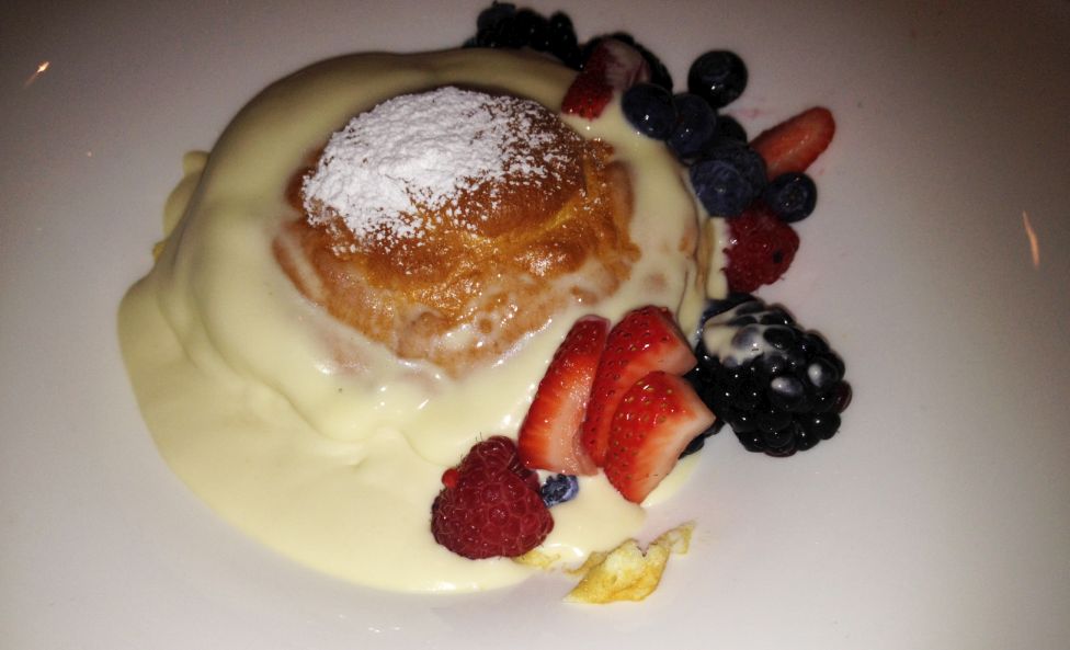 This is really weird how they served their soufflé! Our waiter come out and rushed over our table to show us the hot soufflé still it a mold and told us to take a look before heading back to the kitchen to plate it. When he came back the soufflé became a big blob on a plate!