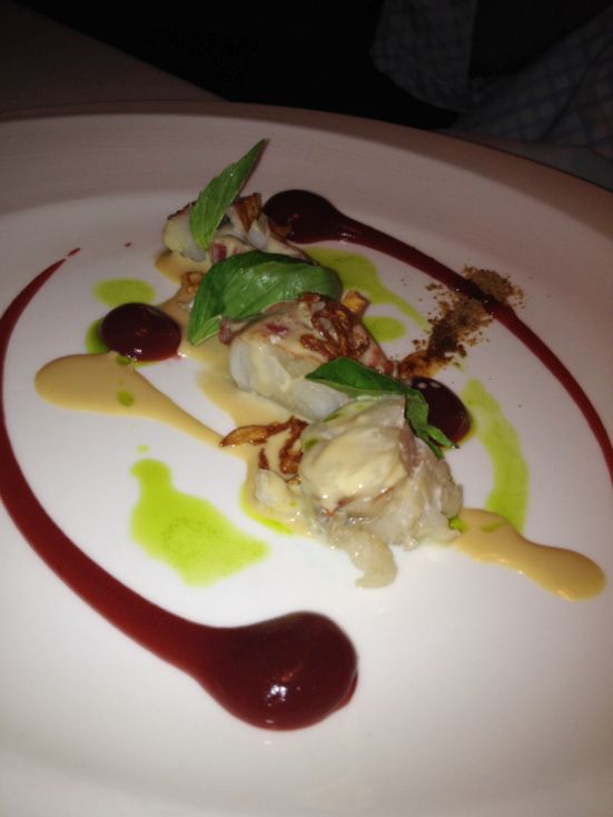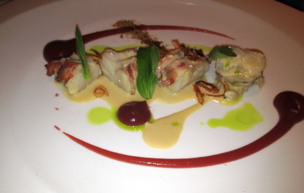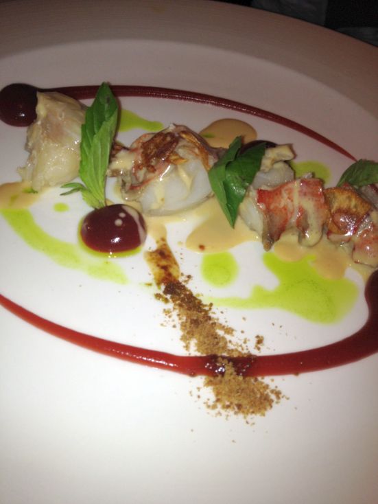 Raj selected the slow poached lobster (additional $10) with Lemongrass, sweet basil, tamarind gel.