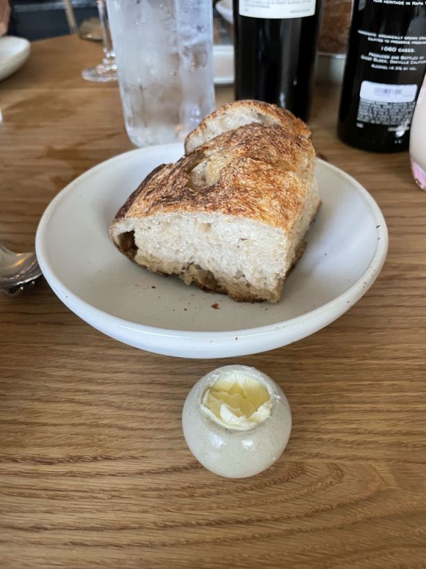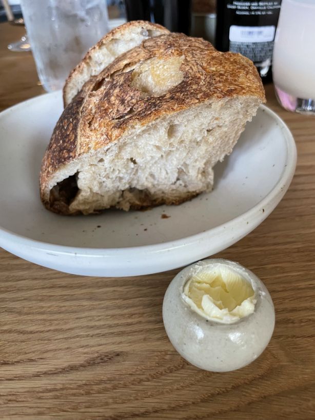 SOURDOUGH levain, cultured butter or Sicilian olive oil, made in house.