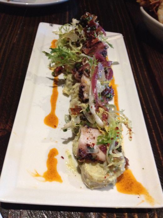 The octopus were cooked properly and has a delicious grilled flavor, the salad with fennel, olives and bacon were a good combination.