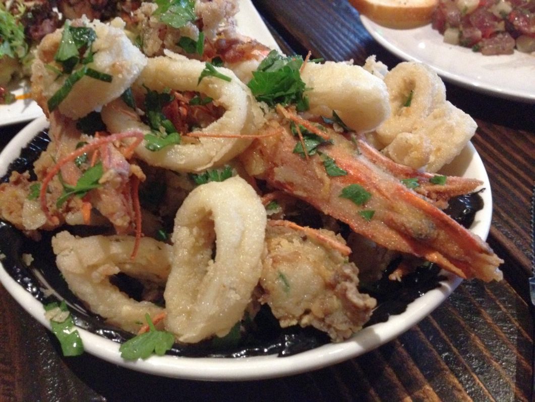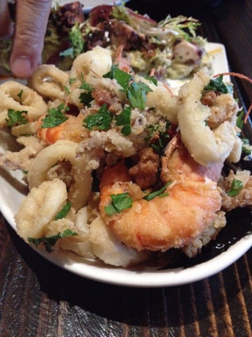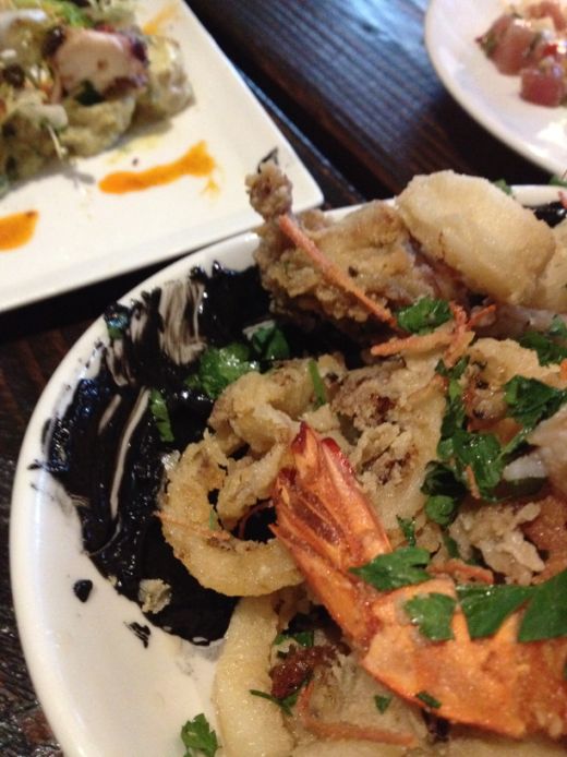 Crispy oyster, prawn, calamari served with squid ink aioli.