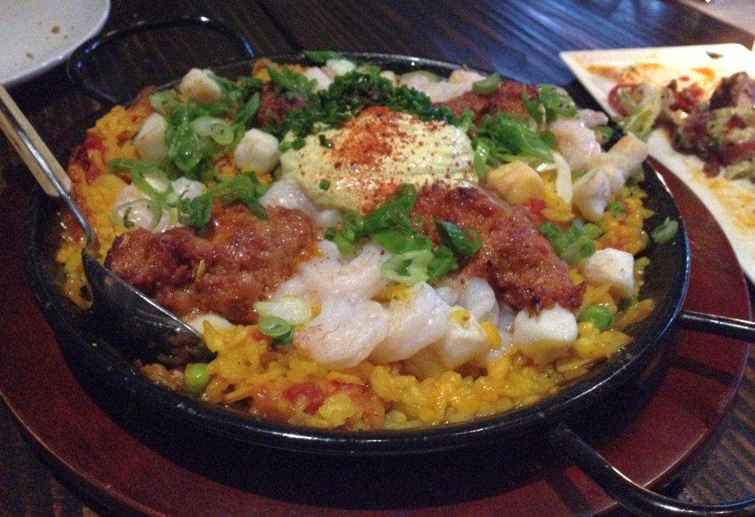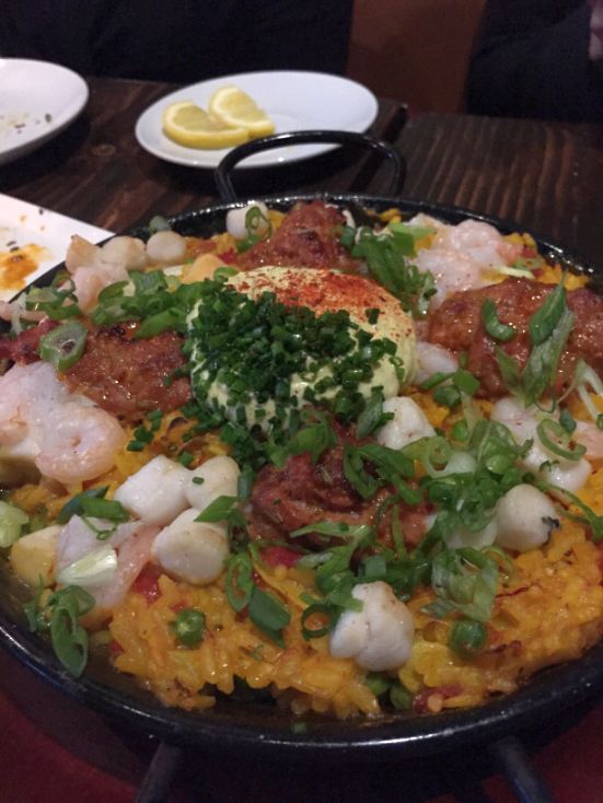 Chef Campbell offers a daily take on paella and changes the stuffing on a daily basis.