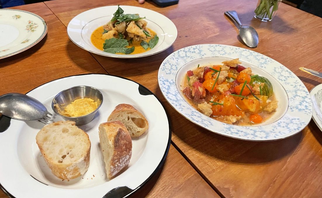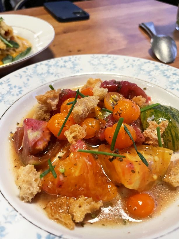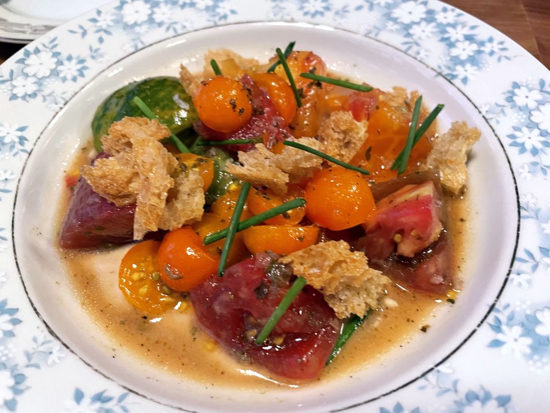 Local heirloom tomatoes, tonnato sauce, capers and crispy bread.