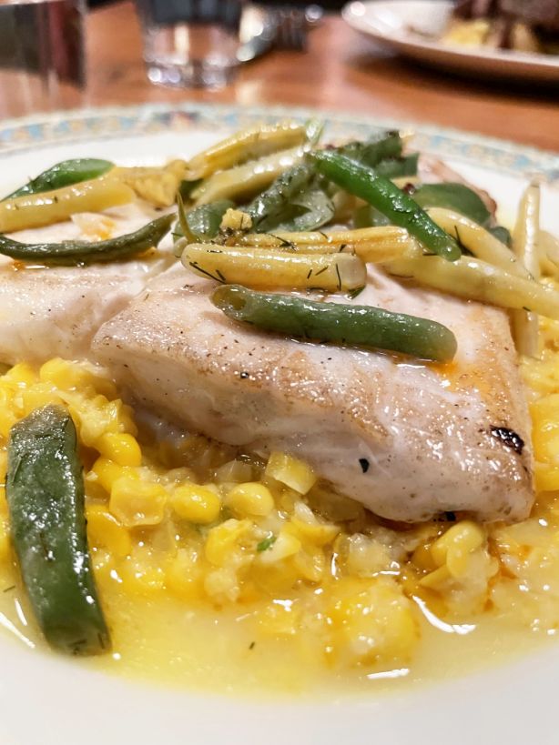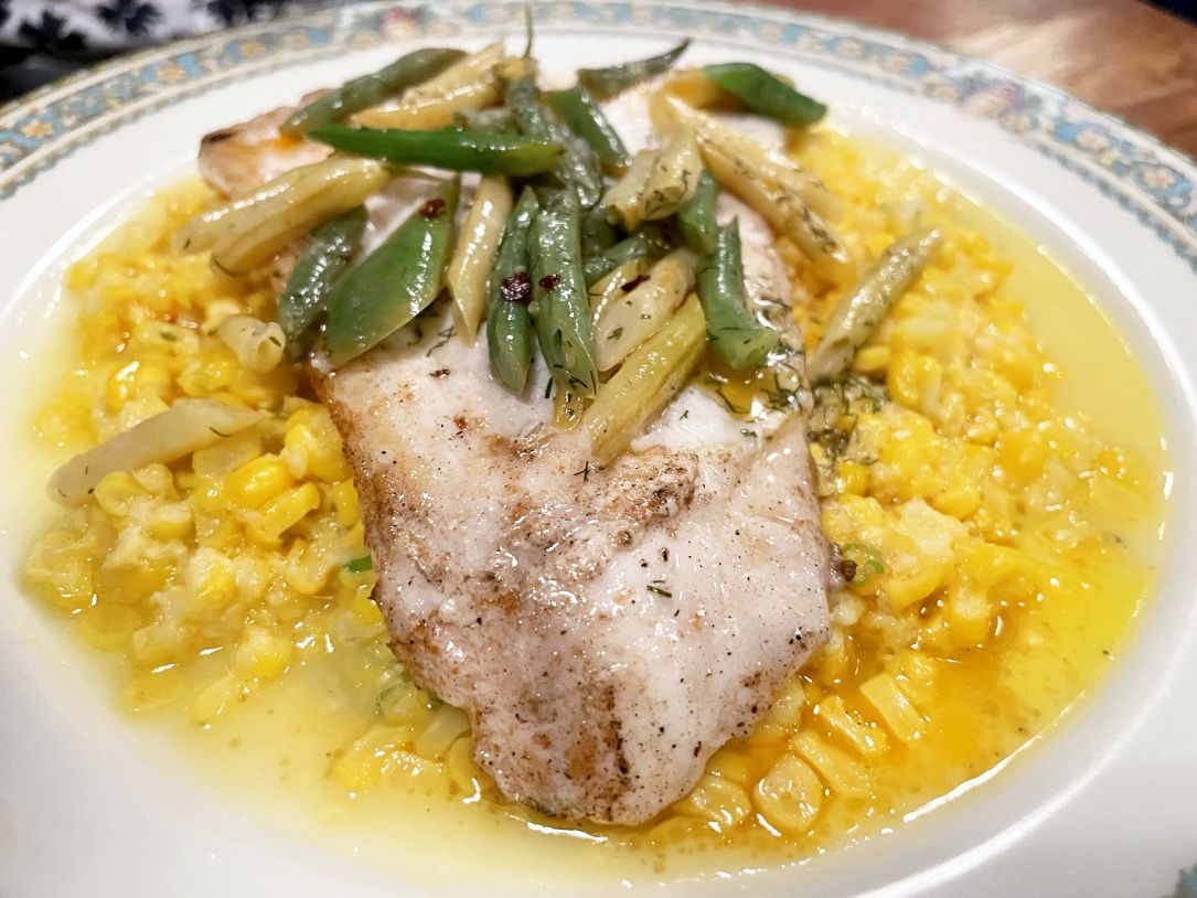 I love the fish, the corn is so sweet and the summer beans added another texture to the dish.