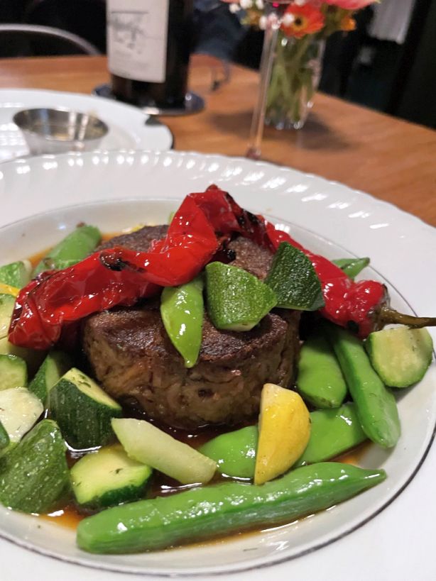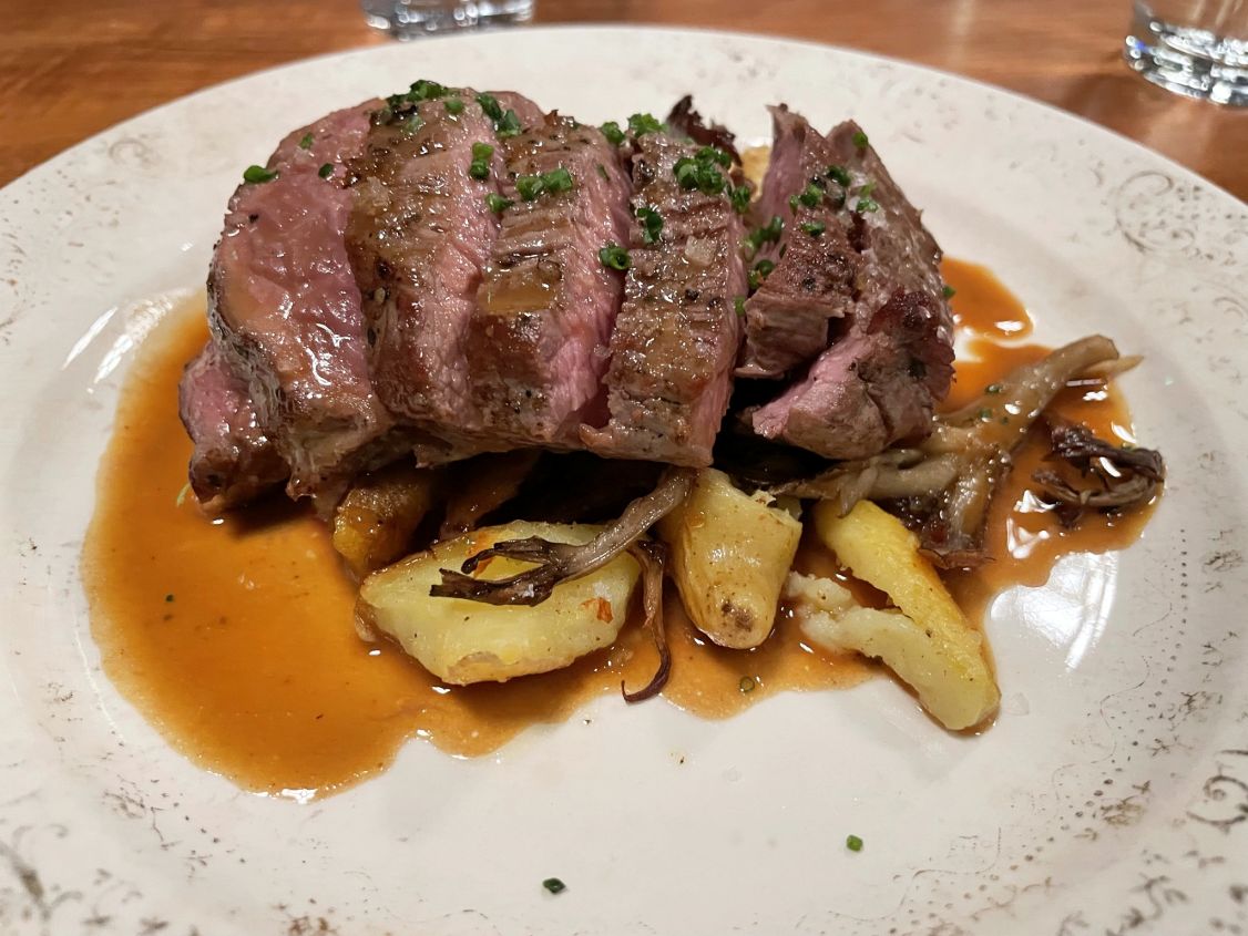 Hoa loves meat so he got the roasted beef bavette, fingerlings, and Maitake mushrooms.