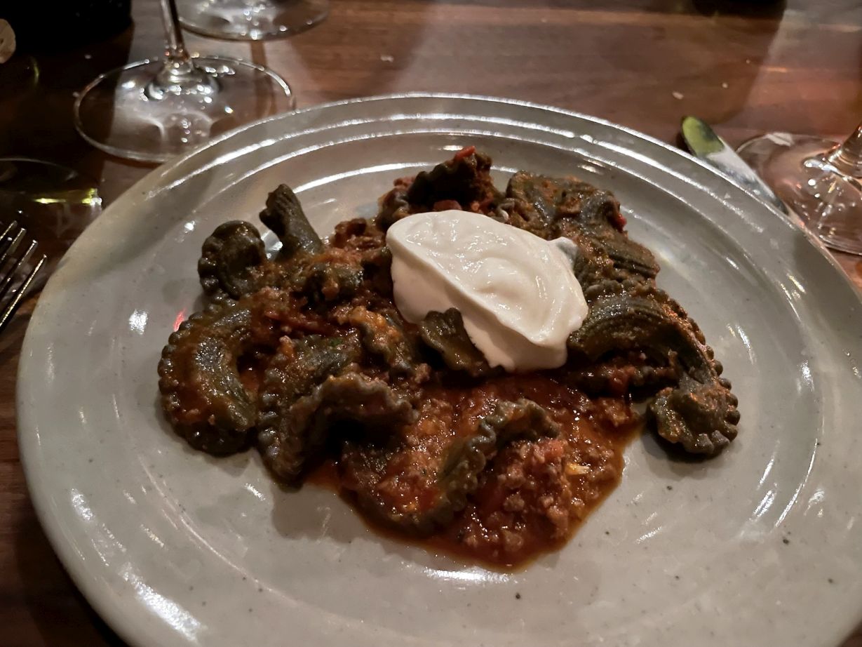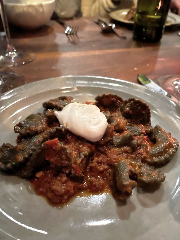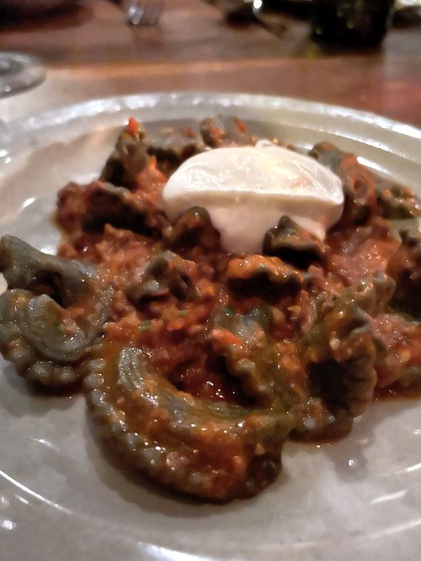 I never had creste pasta before and I like the texture of the pasta which is paired with a satisfying Bolognese sauce and topped with a whipped ricotta.