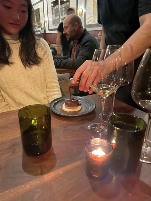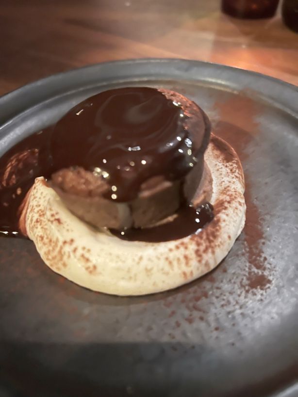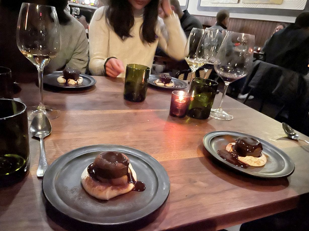 The hot chocolate cake was really delicious! We were so full and barely any room for the bombolini (also delicious).