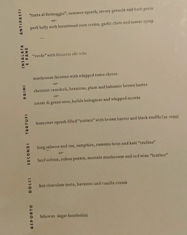 The service was friendly, attentive and the staff made you feel at home. The chef 5 course $85 menu features seasonal and local ingredients with an emphasis to California Italian flavors.