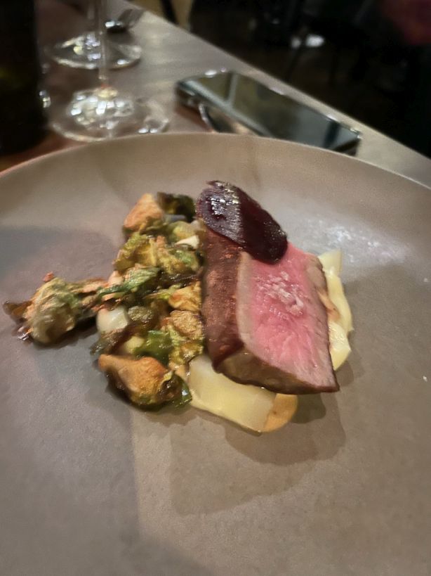 CHESTNUT CANEDERLI, BRASSICAS, PLUM AND BALSAMIC BROWN BUTTER.