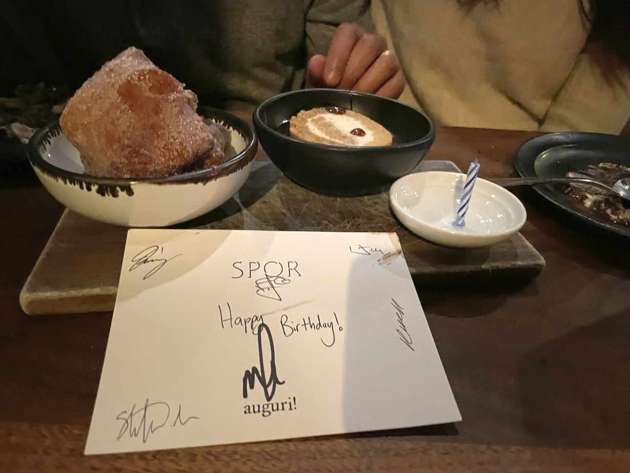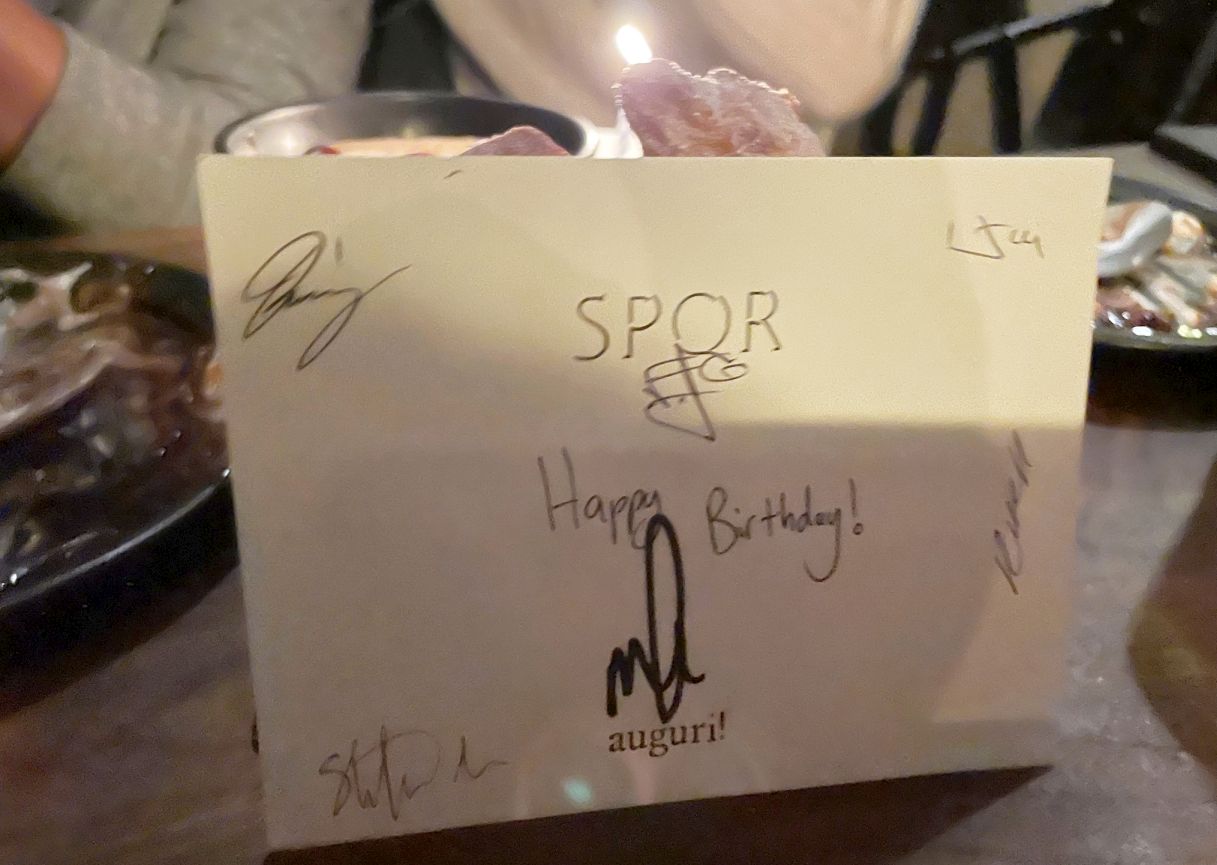 Nice touch from SPQR with a signed Happy birthday card from all the staff members.
