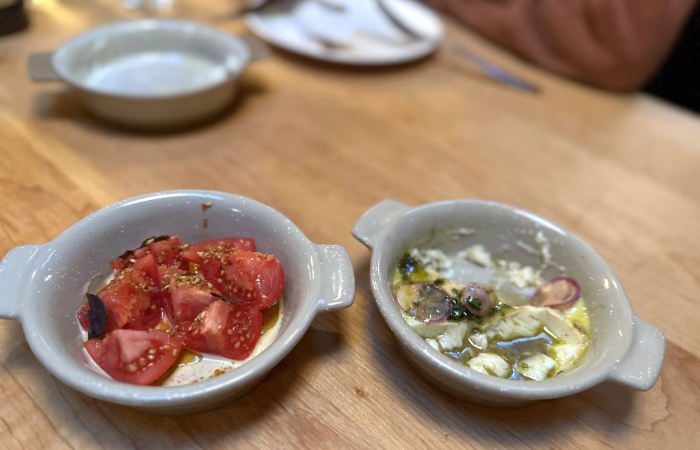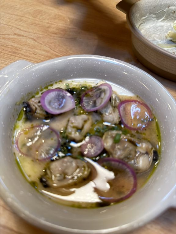On the left is like a savory panacotta, with red onion and steamed mussels. The flavors are so incredible.
