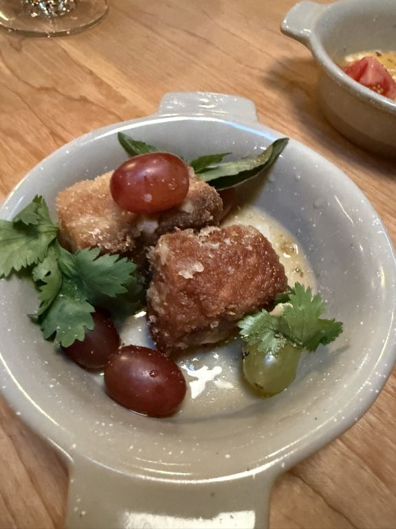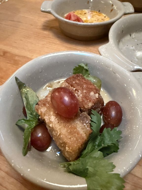 Pork belly "salad" grapes & fish sauce. We could not believe how the grapes went so well with the pork belly. Something as simple as a grape can elevate a dish.