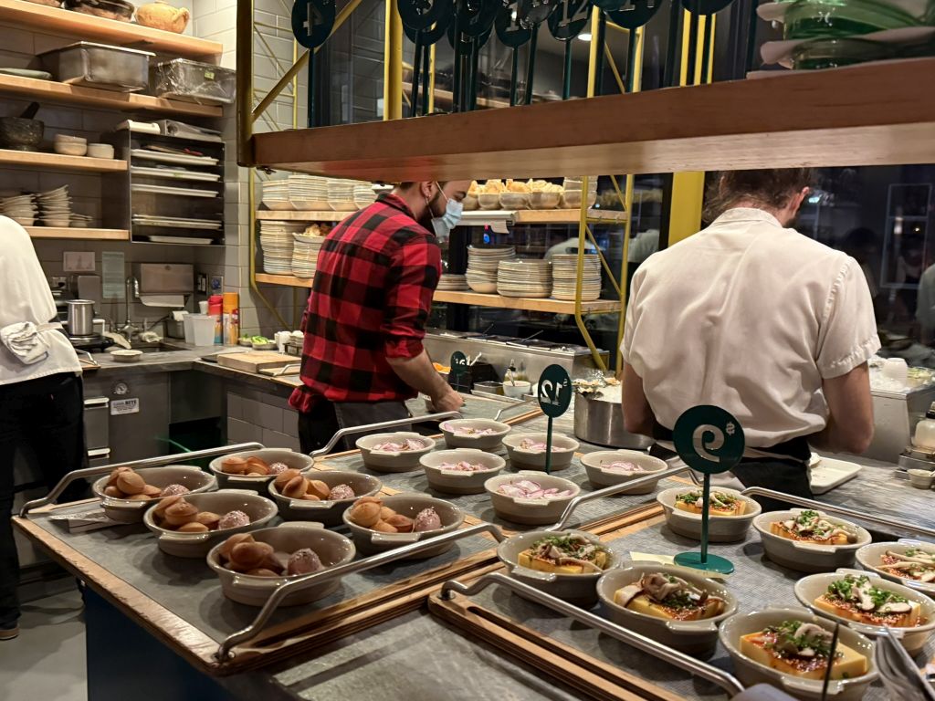 The concept of the restaurant is having small plates served on Dim Sum style carts.