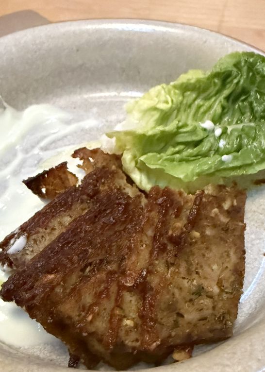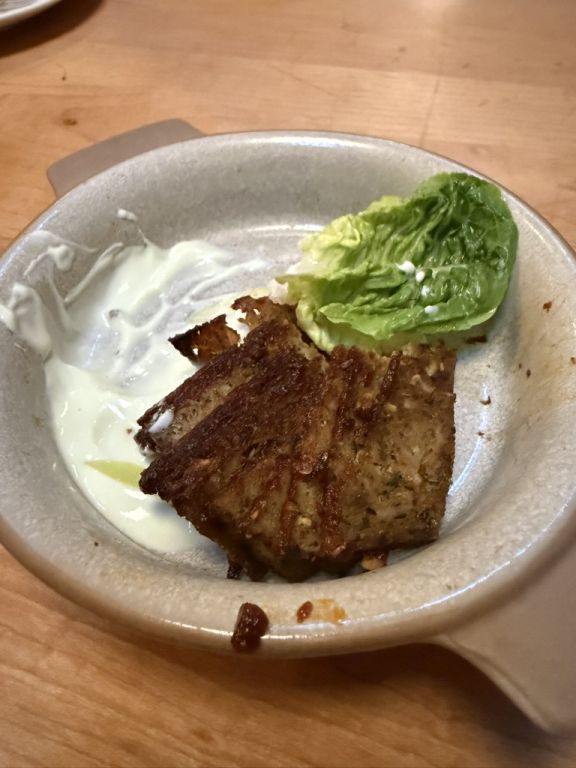 Lamb gyro meat with yogurt and lettuce, This dish was just okay as I thought the meat was a bit too dry.