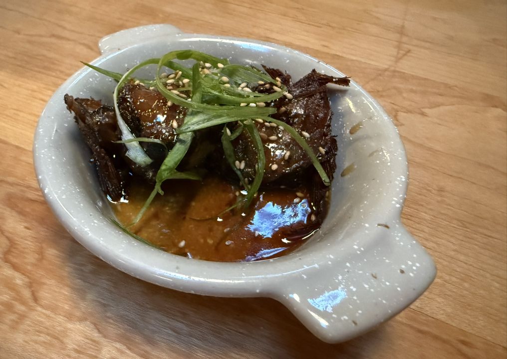 Deep-fried sweet soy marinate fish parts. This dish is reminiscent of the Vietnamese Ca Kho (braised fish). Lots of umami flavors.
