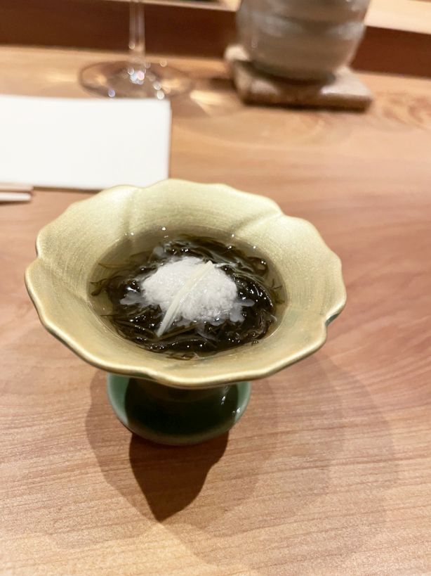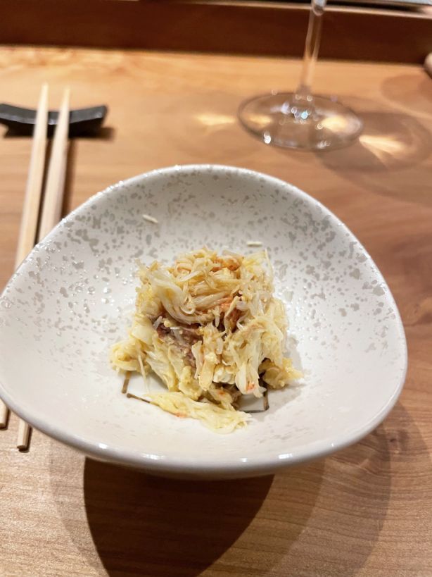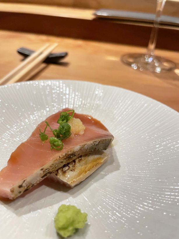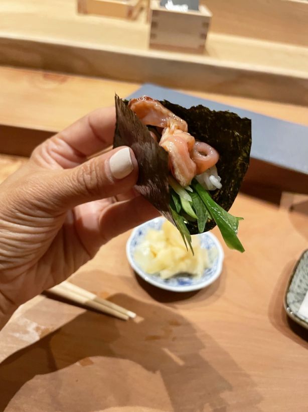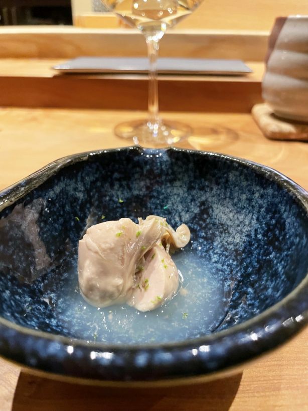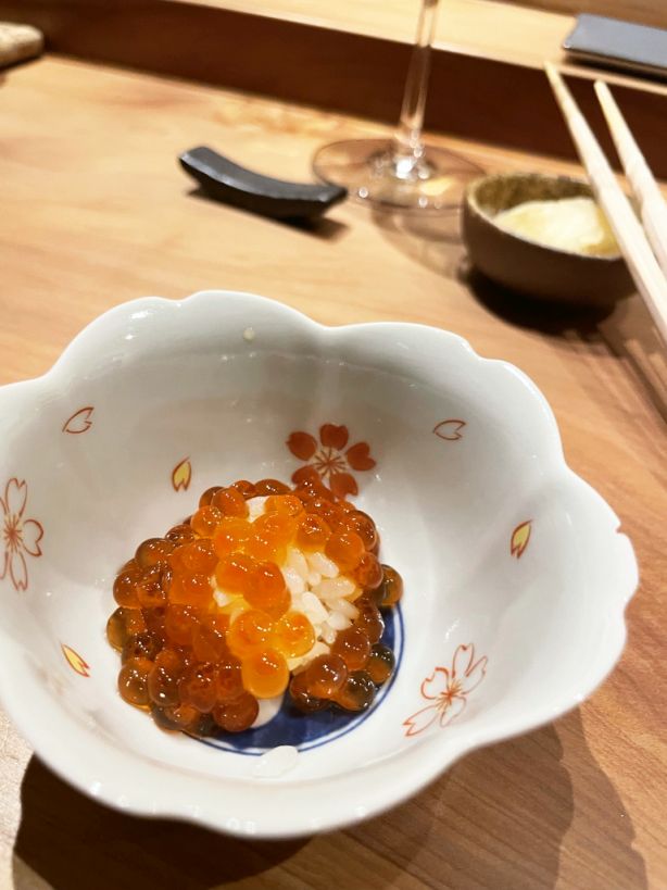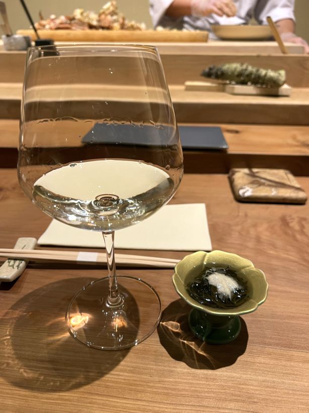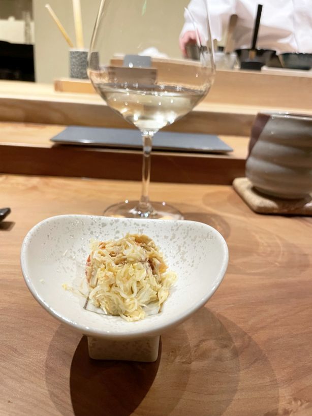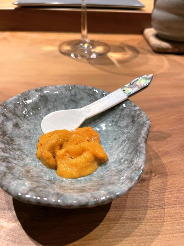 Omakase is basically a chef’s choice dining experience. Here the Omakase that Jason prepared for us is a 21 course that highlight fresh seafood, most of which is seasonal and comes directly from Toyosu Fish Market in Tokyo, Japan but there are also spot prawns from Canada, and Uni from Santa Barbara. The fish is shipped via Fed Ex directly to the restaurant. There’s no menu, and Jason describes each course as he presents it to his guests.