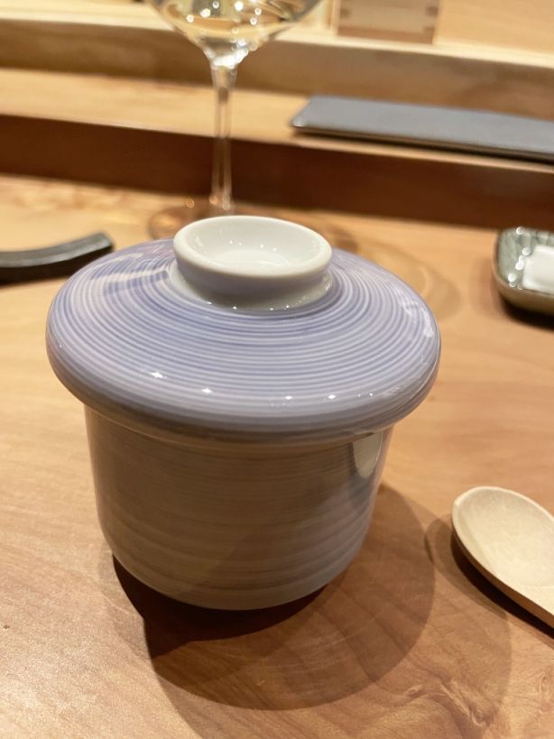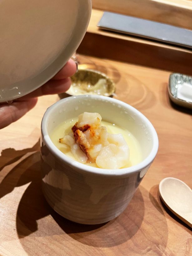 Chawanmushi is a classic Japanese steamed egg custard served in a tea cup. Here it is elevated with the addition of lobster meat.