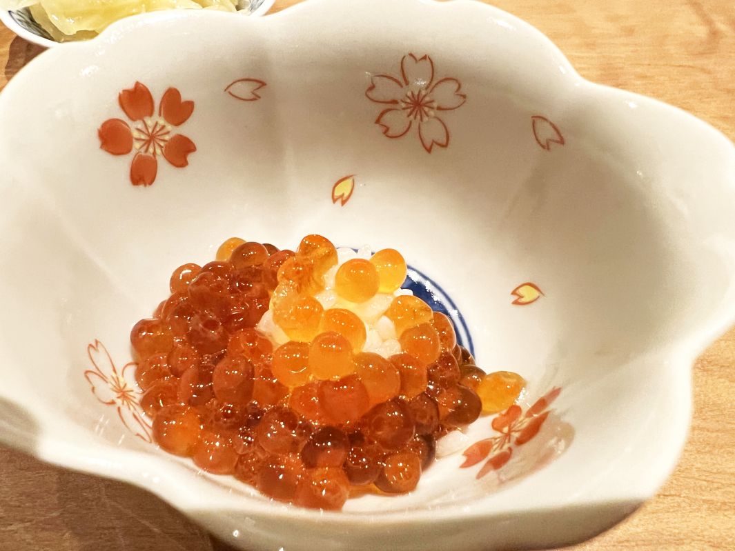 I love Ikura because it has a fairly mild fishy flavor but what I really like is the texture, What makes it fun to eat Ikura is each egg is like a miniature water balloon that bursts in your mouth with flavor as you bite it.