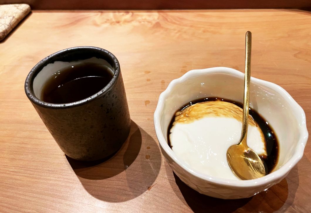 For dessert, Betsy brought out a roasted green tea and a sesame pudding with black sugar.