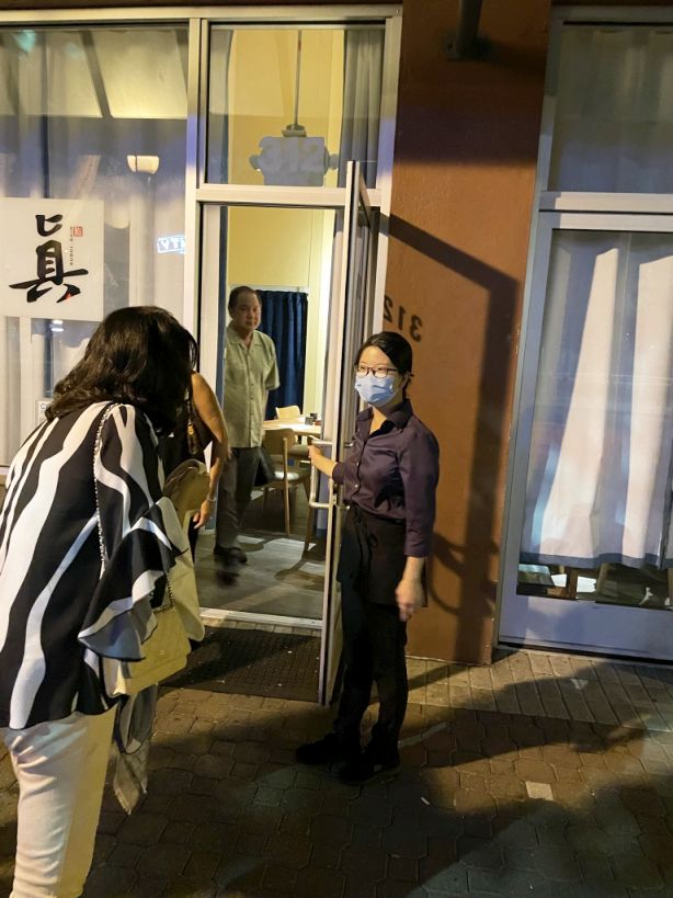 Jason and Betsy waiving good bye and thanking us for dinning with them.