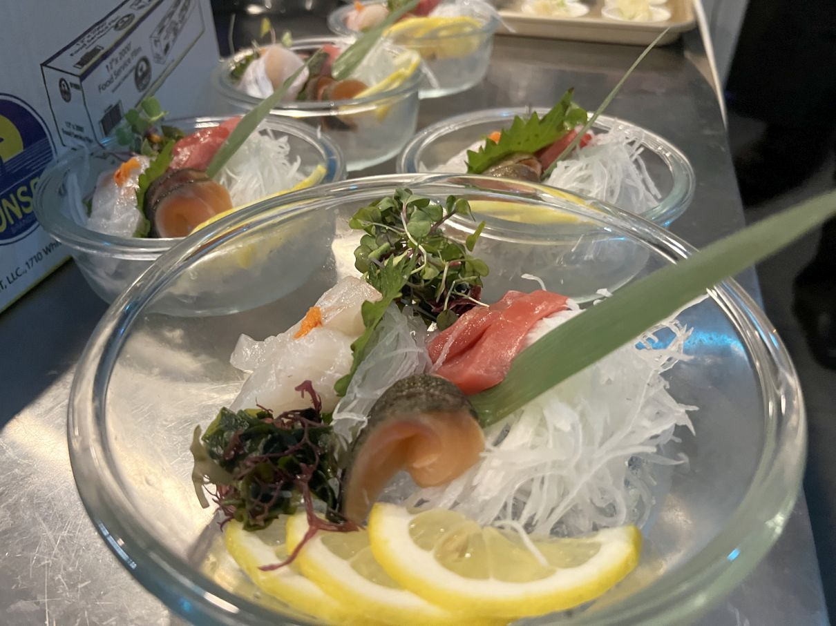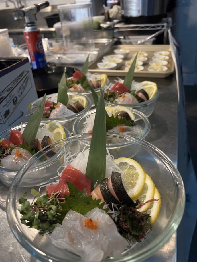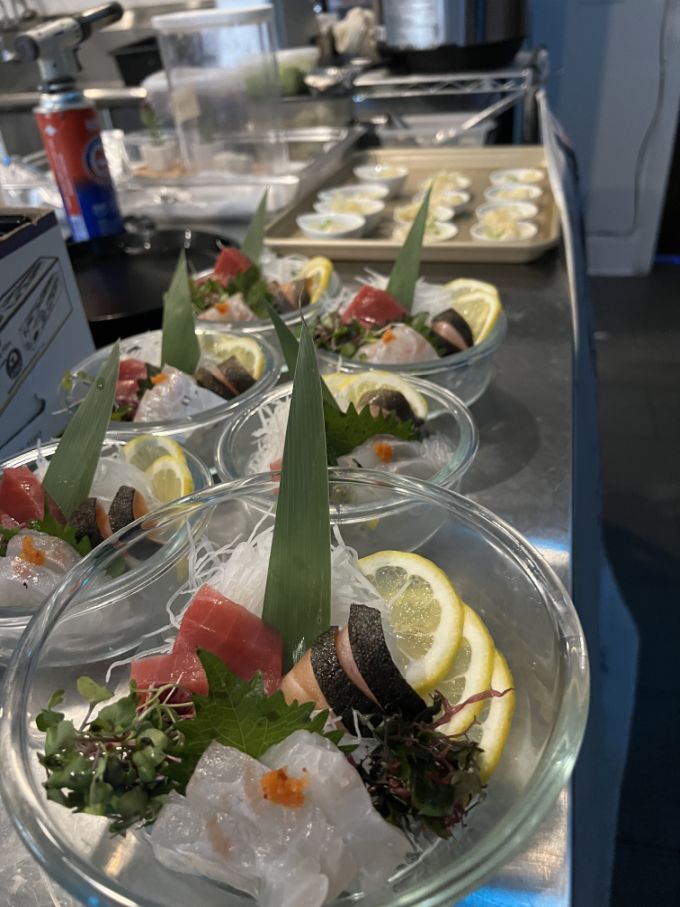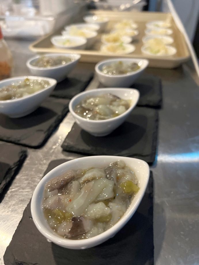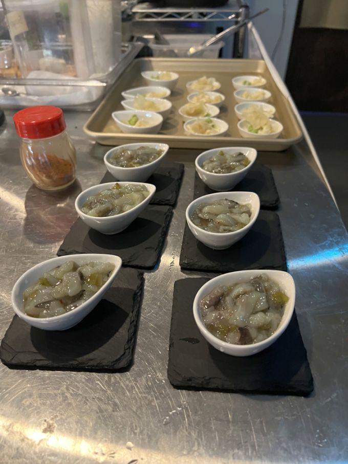 Tako salad are plated and almost ready to be brought to our table. Chef Ti, will put a few touches before finalizing the dish.