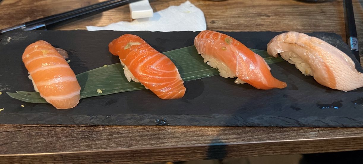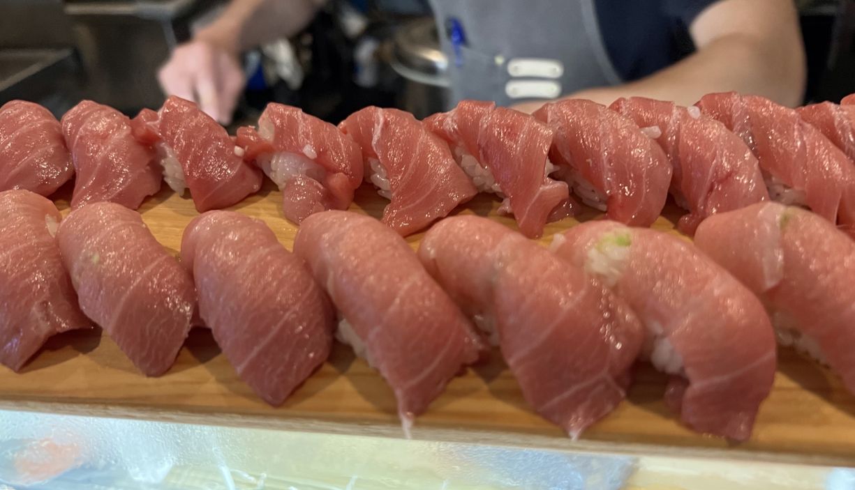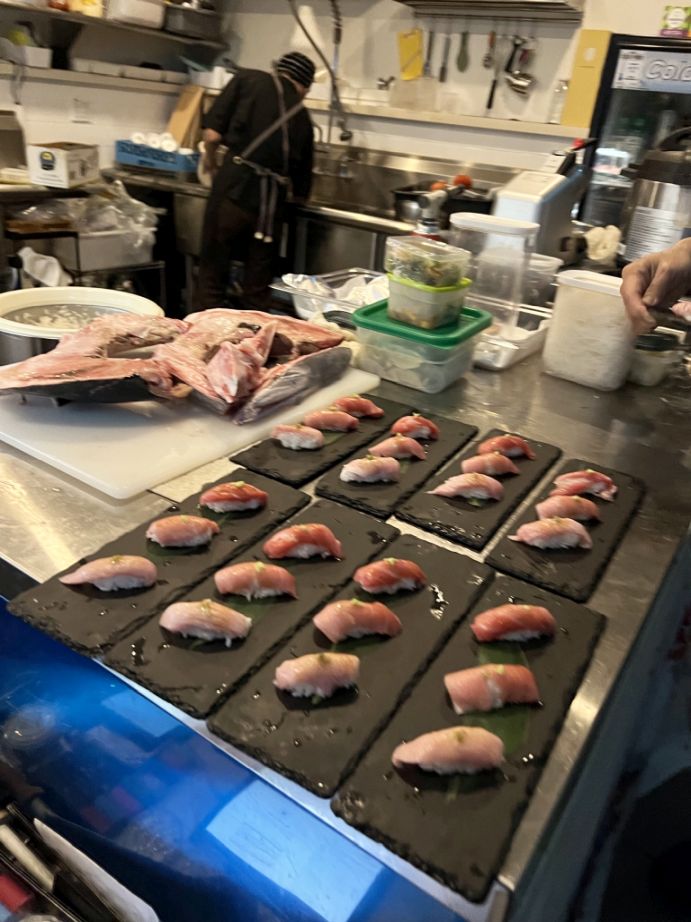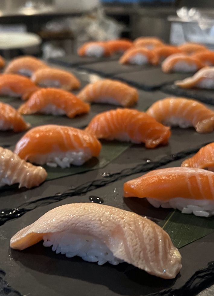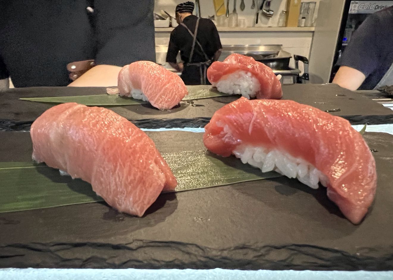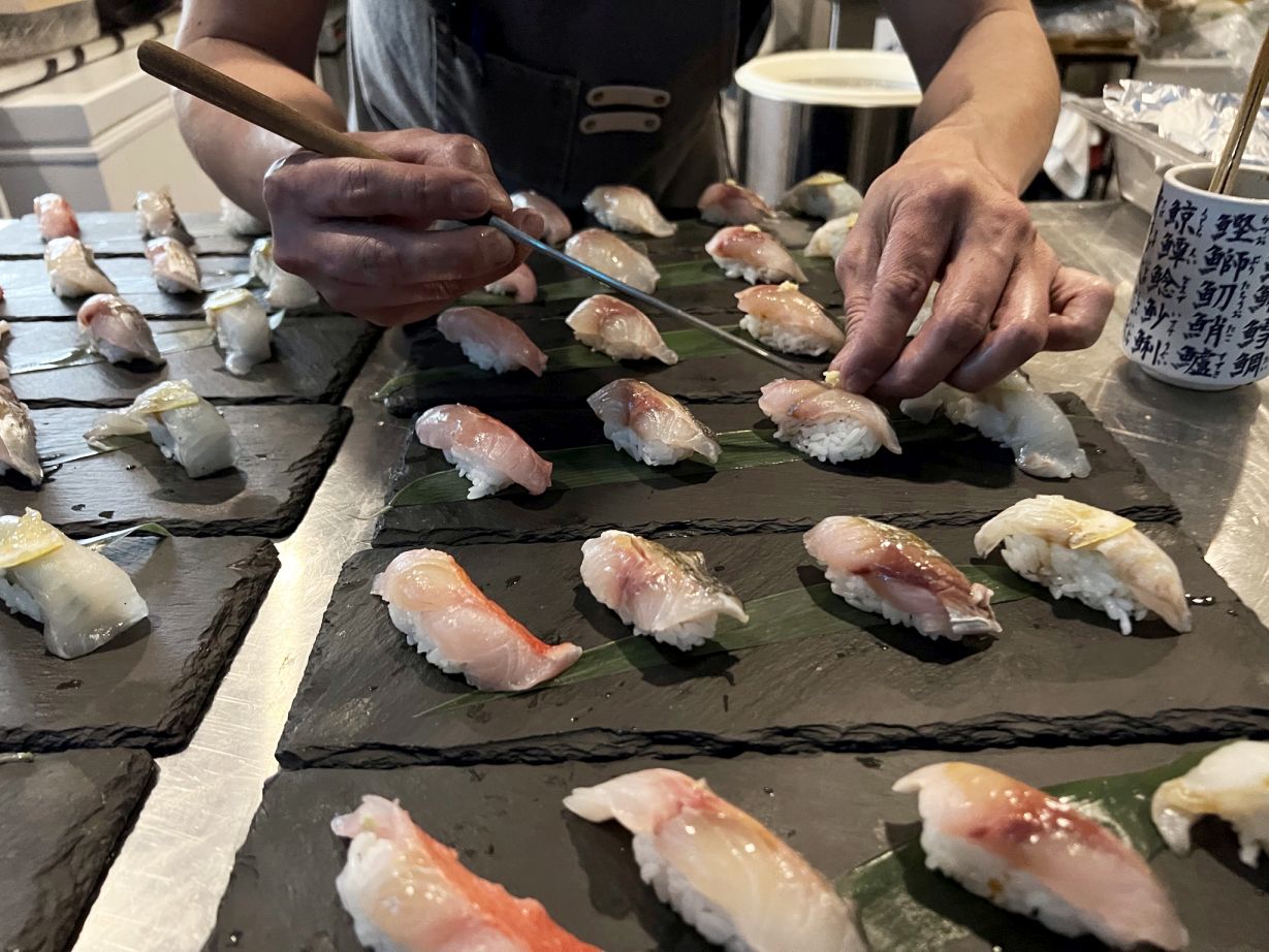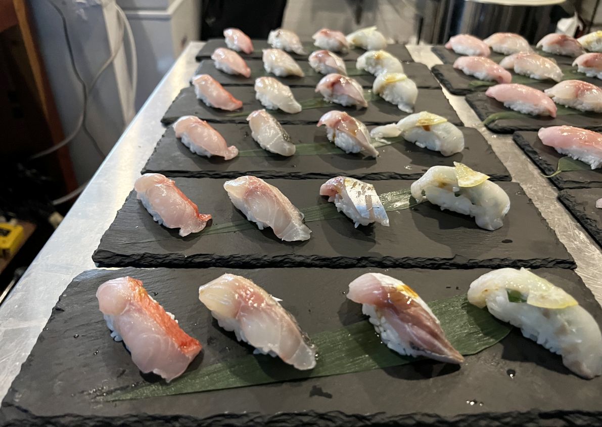 Golden eye red snapper, black snapper, Spanish mackerel, halibut nigiris.