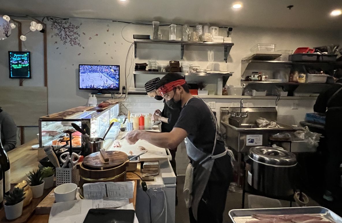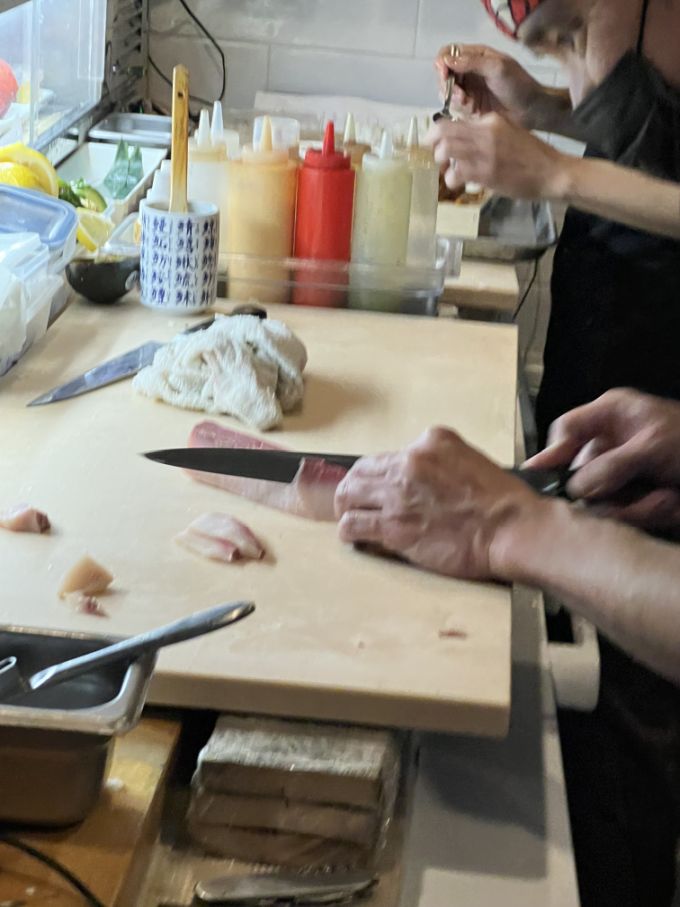 Here are the pictures I took of what Chef Ti, his sous chef, and Kiwi are doing during service.