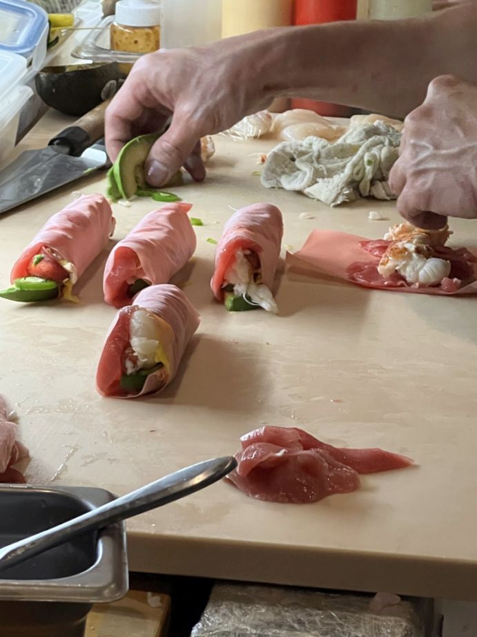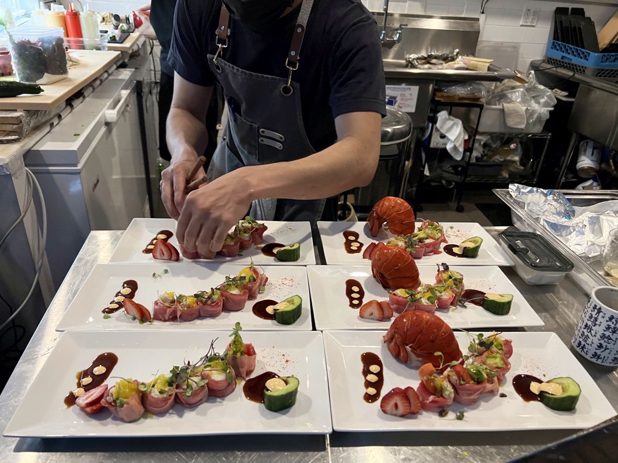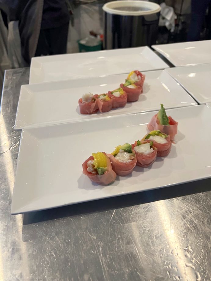 lobster rolls, Chef Ti, used tofu skin to wrap the lobster meat and Tuna.