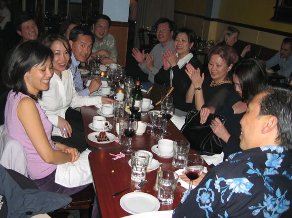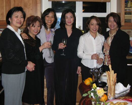 Ha,Doan, Me, Mai-Ly, Hanh and Huyen enjoying a glass of champagne. |