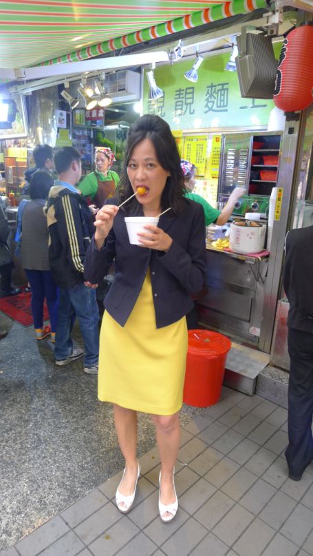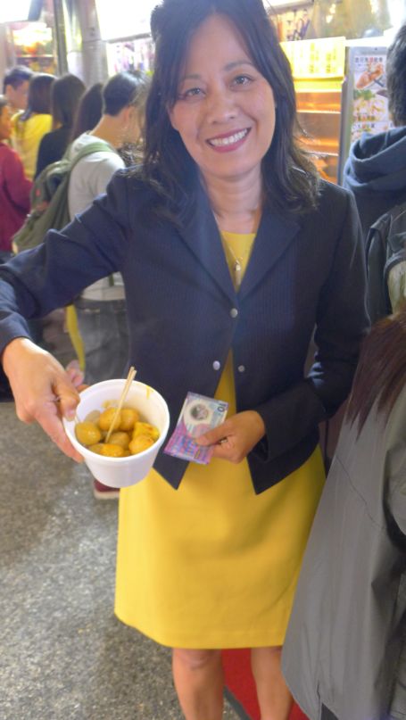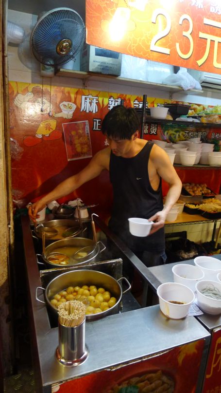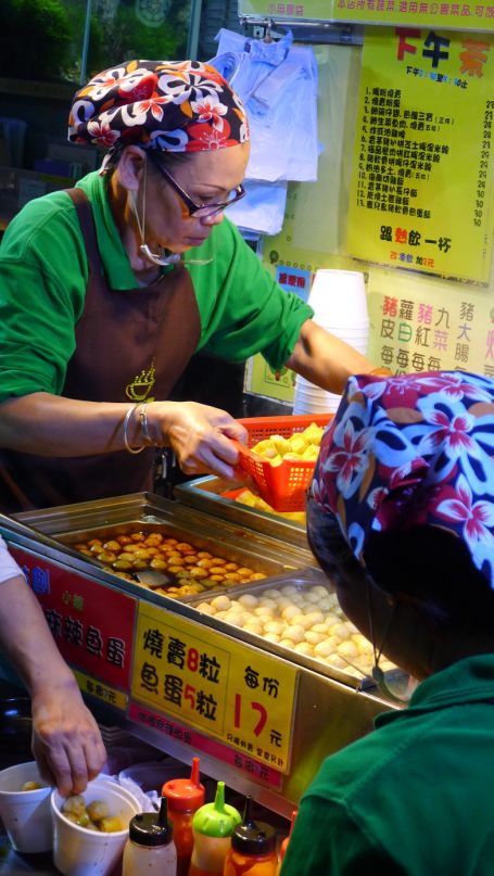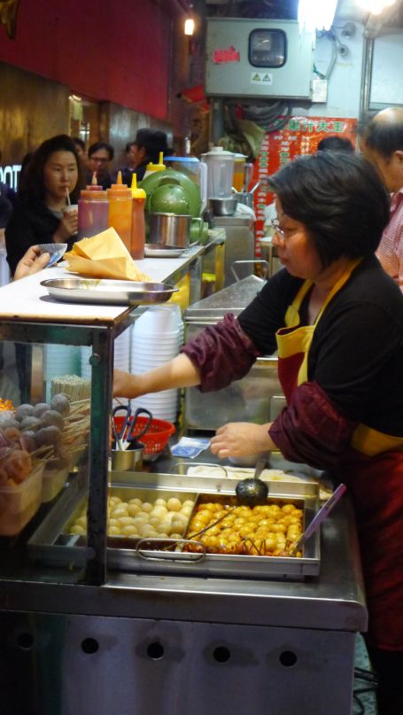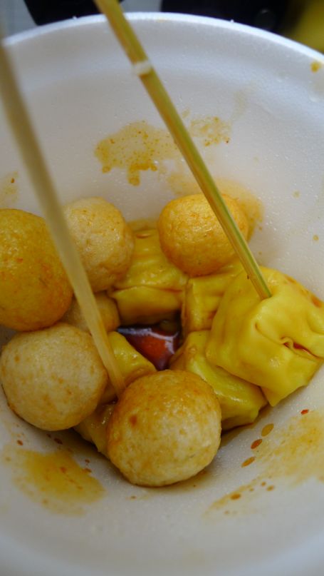 I am staying in line for the fish balls just like the locals.