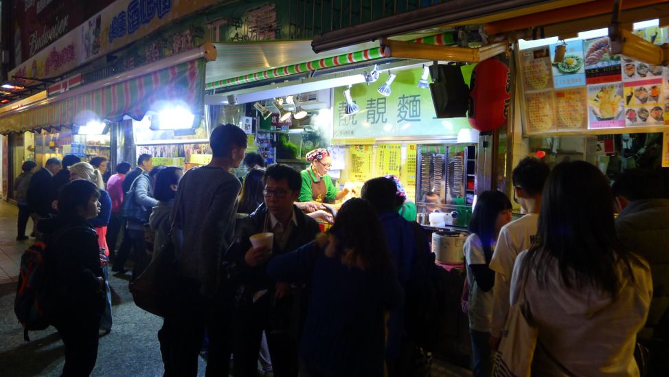 Street alley filled with local people eating in small eateries. It is actually a lot of fun.