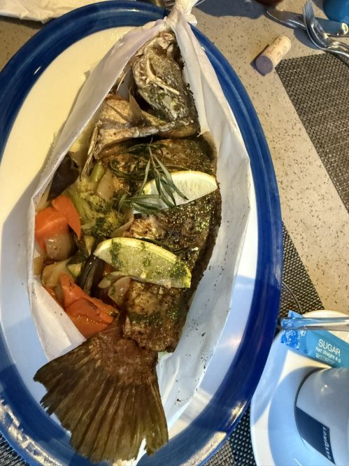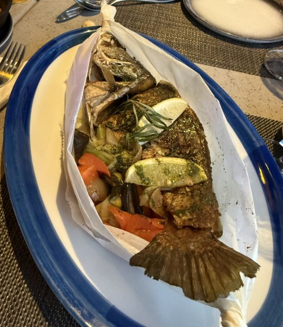 Loan ordered a whole roasted fish.
