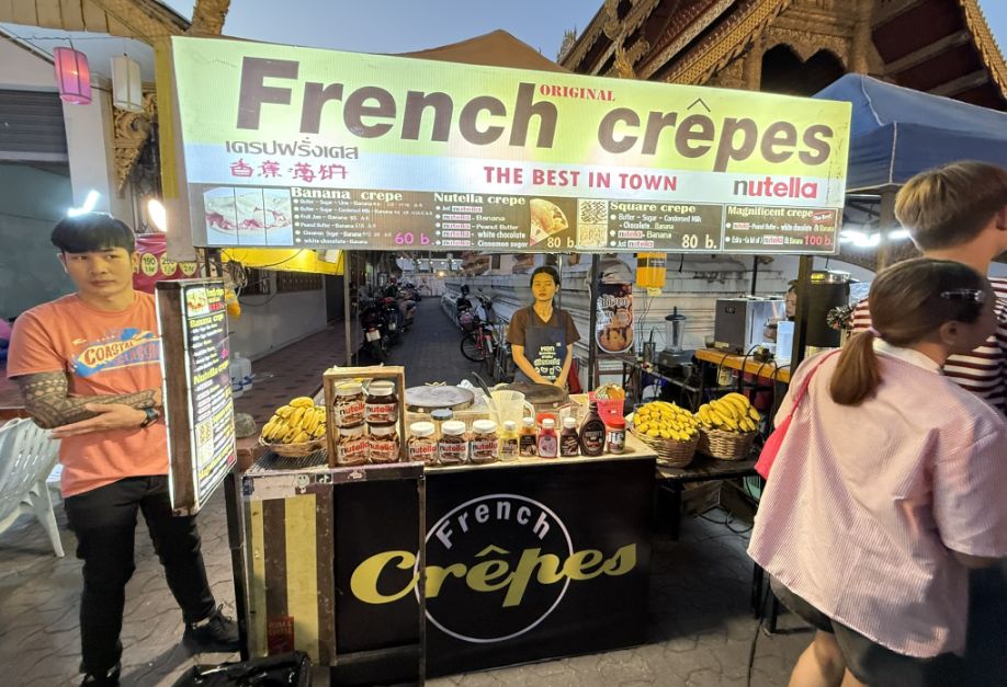 There are endless choices: sizzling skewers on charcoal grills, freshly made pad Thai, grilled sausages, mango sticky rice, coconut pancakes, fruit shakes, and so many local northern Thai specialties.