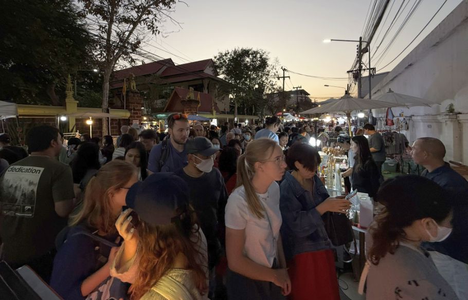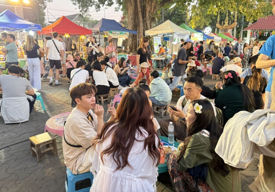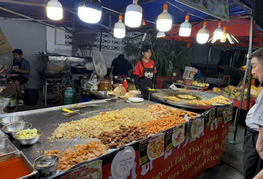 On Sunday evenings, the entire stretch of Ratchadamnoen Road and the surrounding lanes inside the old city walls transforms into a massive pedestrian market, and the sheer number of people and food vendors can feel almost overwhelming but in the best way.