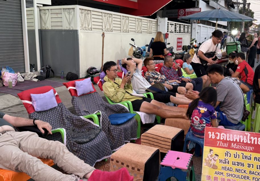 It is so cheap and it explains why so many locals and visitors alike happily line up for a session. It is super casual, unpretentious, and incredibly social, with the gentle hum of conversation and the rhythmic motion of massage creating a unique street atmosphere. Definitely not for me because I don't feel comfortable sitting around in the street with so many people around.