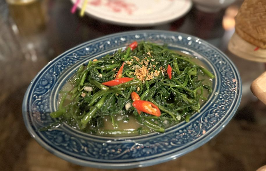 The sautéed morning glory with garlic and Thai chili brought a fresh, slightly crunchy contrast, simple yet packed with flavor.