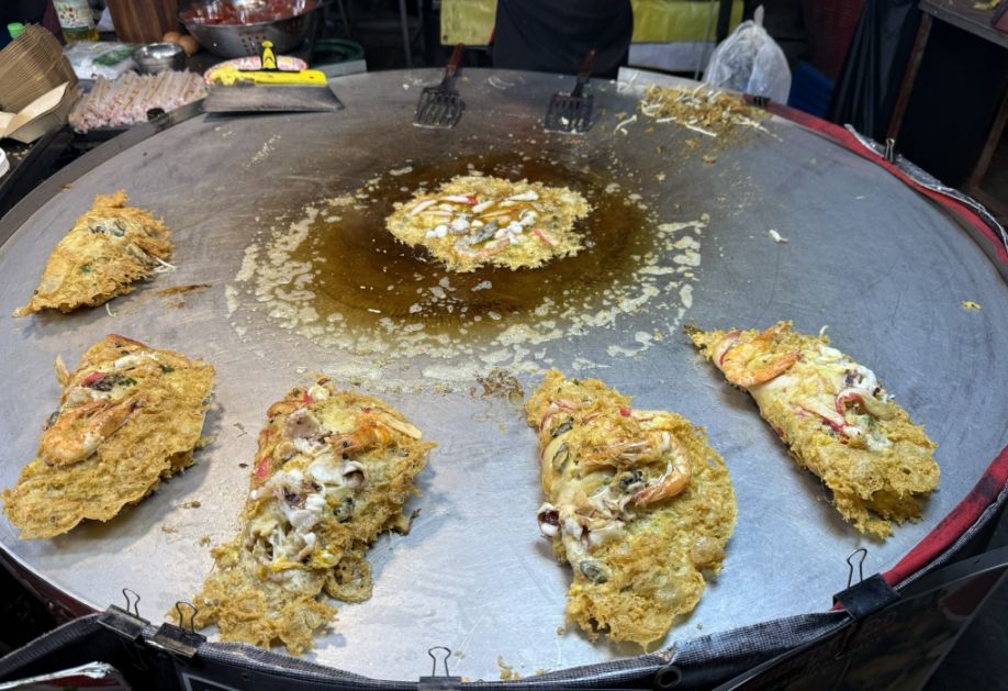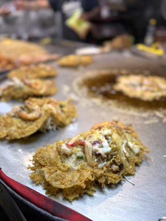 What makes it so special is how casual and communal it feels. People just grab what looks good and sit wherever they can, often on those tiny plastic stools and low tables right along the street, turning every corner into a makeshift dining space.