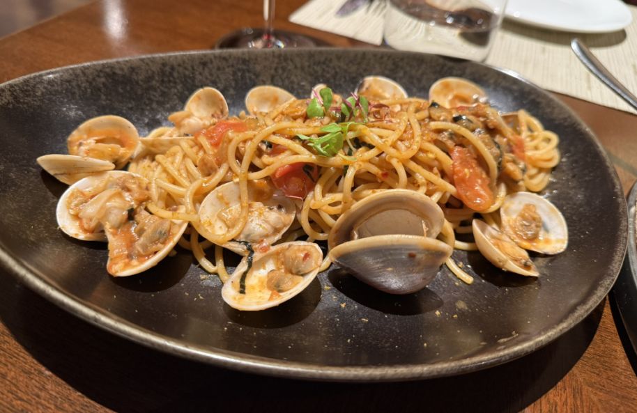 The Spaghetti Piccante Vongole Bottarga had a strong foundation: the clams were fresh, and the combination of chili, cherry tomatoes, and white wine sauce gave it a nice aromatic base. The addition of bottarga added depth and a slightly briny richness. Still, it didn’t quite hit the mark as it needed more sauce, which left the pasta feeling a bit dry and less cohesive than it should have been.