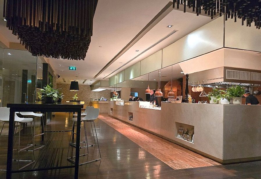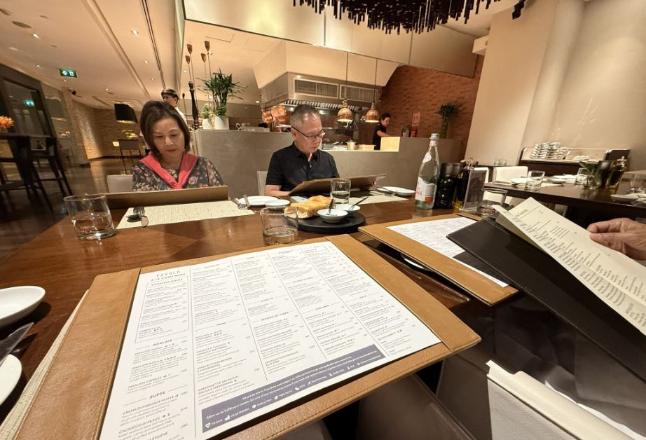 The dining area itself is spacious and thoughtfully arranged, with comfortable seating and a warm, ambient glow. It strikes a balance between fine dining and relaxed comfort, refined without feeling stiff. The materials, wood, stone, and soft lighting give it a modern Italian feel while still blending seamlessly with the hotel’s overall design.