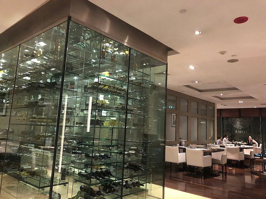 Another standout feature is the wine display. Bottles are showcased like a curated collection, often arranged in a glass-enclosed wall or shelving that highlights both variety and quality. It adds a sense of depth and sophistication to the room, reinforcing Favola’s focus on pairing great food with excellent wines.