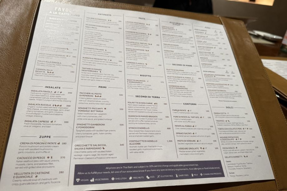 The menu at Favola represent authentic Italian flavors with a refined presentation.