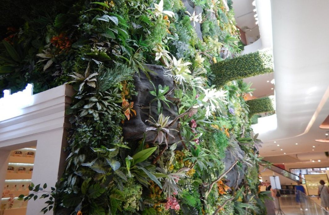 Beautiful wall filled with tropical plants.