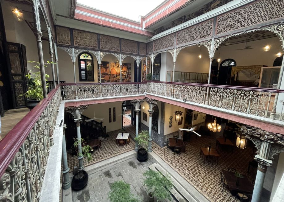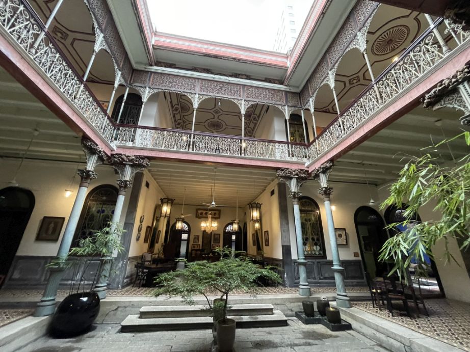 The open space, and balconies frame the courtyard on multiple levels. This design follows traditional Chinese principles, where courtyards create balance, encourage airflow, and serve as a shared family space. Standing there, you can sense how the mansion was designed to breathe, cool, shaded, and serene despite the tropical climate.